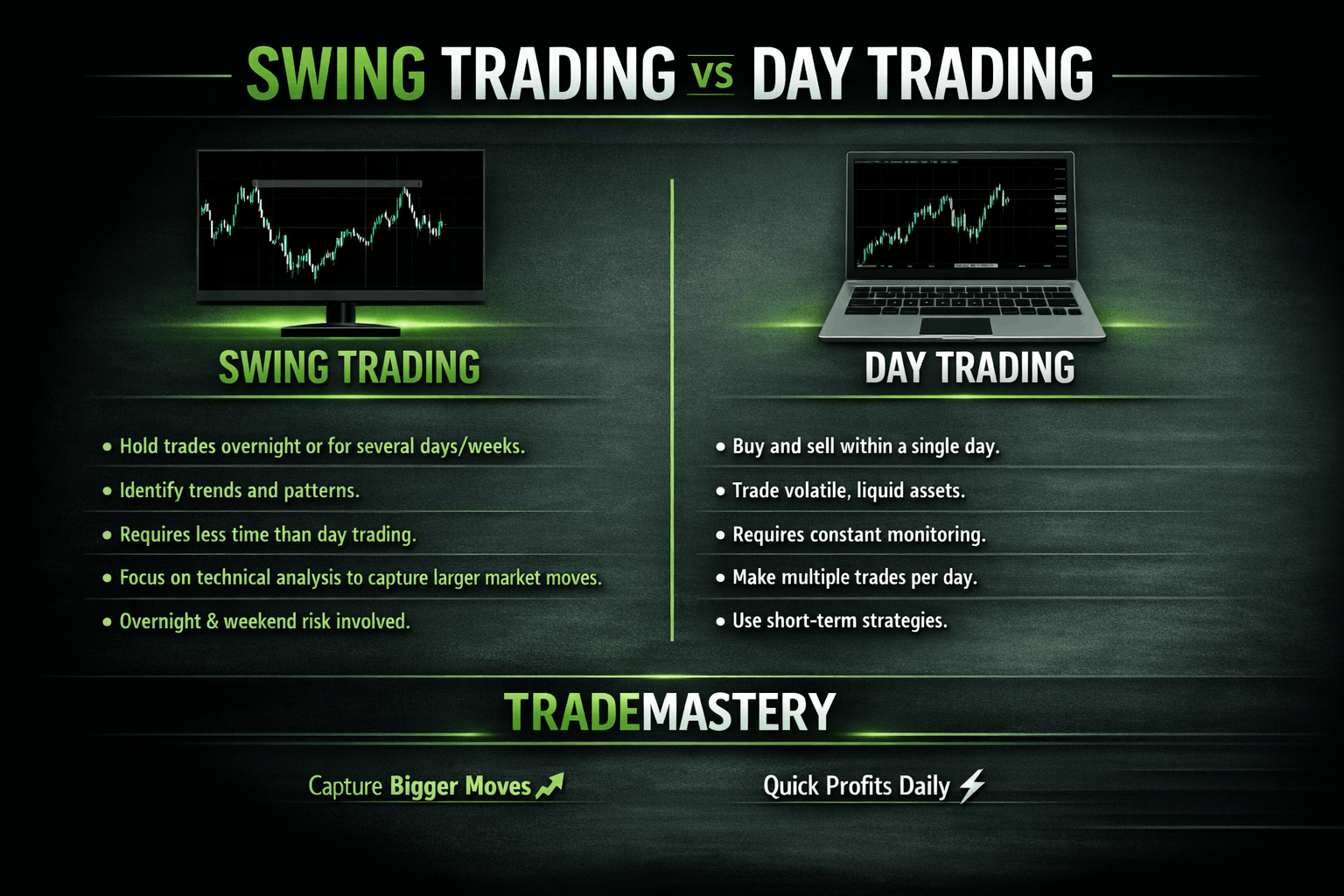 Holding positions for several days to weeks, aiming to capture “swings” in trends or momentum. It offers more flexibility than day trading (less screen time) while still targeting meaningful moves, often using technical analysis for entries/exits.